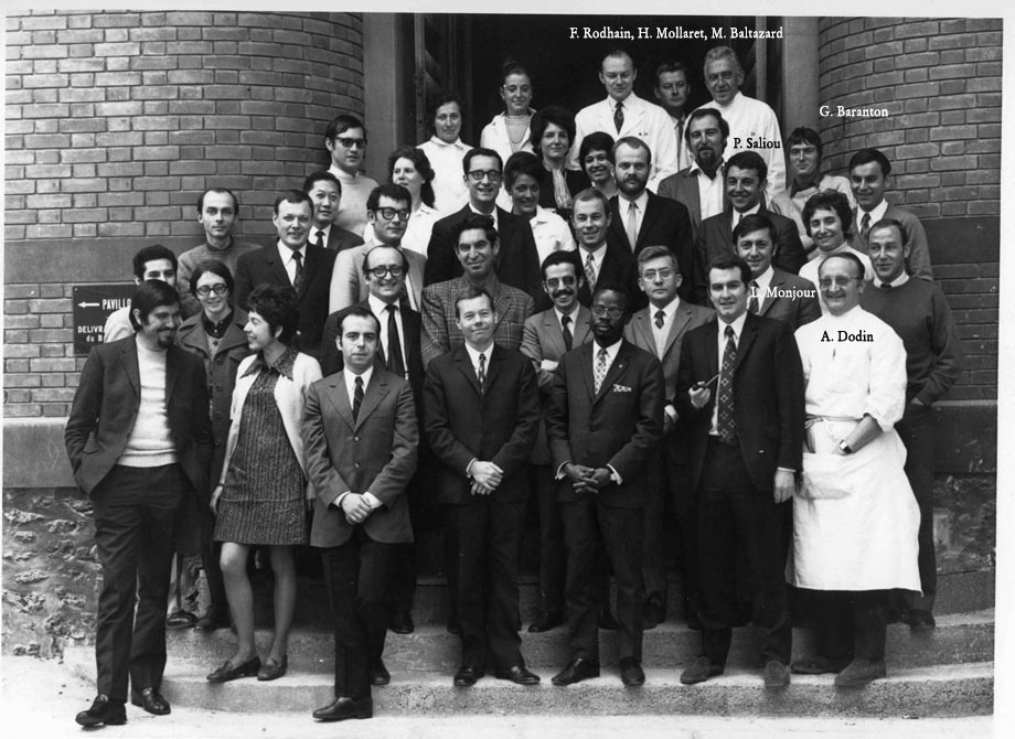 Je vous mets en courrier interne la photo du cours d'épidemio 1970 qui a l'intérêt de montrer au côté de votre père Mrs Mollaret, Rodhain et Dodin et quelques autres dont moi-même. Je me souviens très fortement de ce cours, qui, aujourd'hui encore, me paraît non seulement moderne mais révolutionnaire, voire visionnaire: sachez que M. Baltazard avait inclus en 1970 une journée entière sur l'informatique. Il y eut un cours sur l'architecture des ordinateurs. Pour moi, le mot et le concept étaient totalement inconnus. C'est au fond la seule période où j'ai connu votre père puisque, très rapidement après, en mars 71, il m'accompagnait en Mauritanie où nous faisions une mission sur le terrain avec Jean-Michel Alonso que je venais remplacer. Je ne reverrai plus Marcel Baltazard que j'appelais "Maître", étant probablement son dernier élève.
